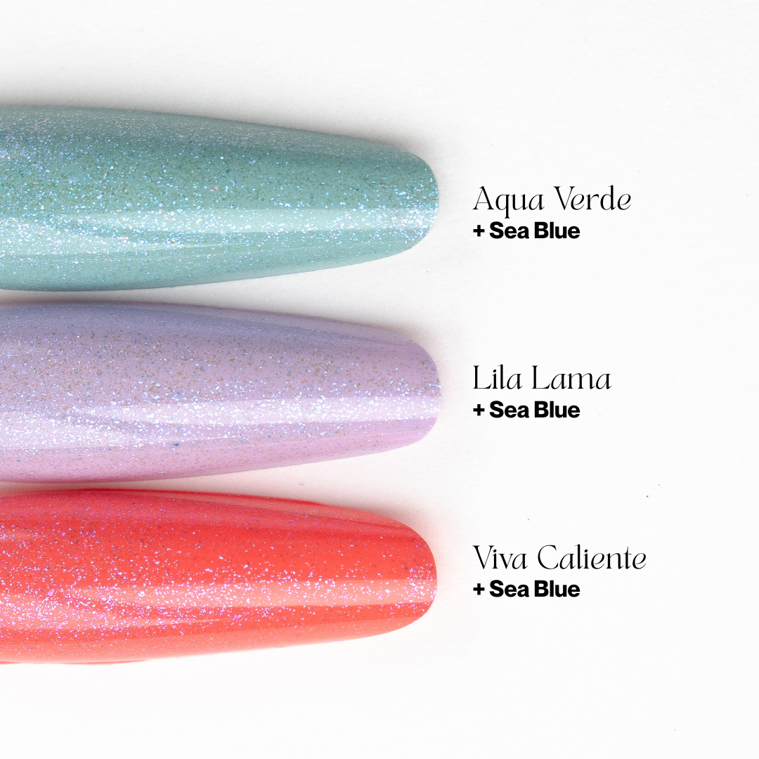 Chaque Mermaid Top Coat est un vernis transparent pailleté teinté, enrichi de micro-paillettes holographiques pour un rendu multidimensionnel. Le coffret contient trois nuances iconiques :