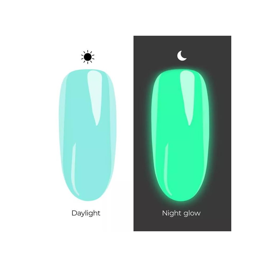 - Vernis hybride bleu pastel qui brille dans le noir
