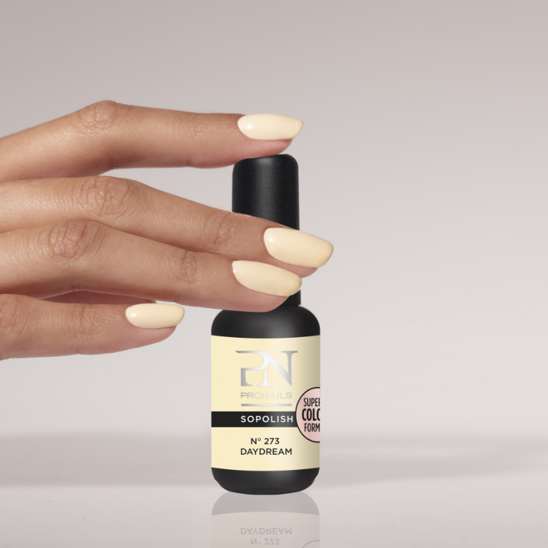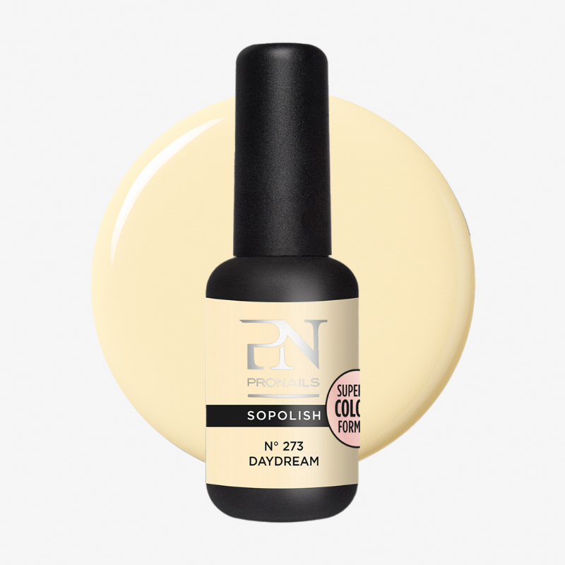 Le vernis semi-permanent Sopolish de Pronails est un traitement de salon unique qui offre des ongles durables et parfaitement vernis pendant au moins 14 jours. Il s’applique comme un vernis à ongles classique, se catalyse très rapidement à la lumière LED et s’enlève facilement grâce à la technique SOAK-OFF ou PEEL-OFF, sans endommager les ongles. Pas de polissage, pas de ponçage, pas de limage, dans le plus grand respect de l’ongle naturel.