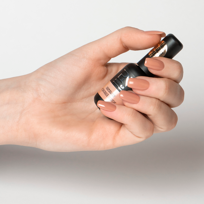 - Pour le soak-off, utilisez la base Easy Soak ou utilisez la base Strucutre si l’ongle a besoin de plus de structure. Si votre cliente souhaite retirer le Sopolish à la maison, vous pouvez utiliser Easy Peel comme base