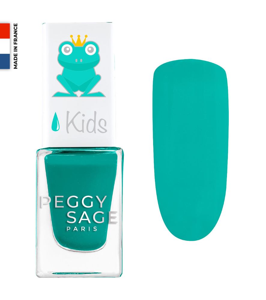 Le vernis Sharlene de Peggy Sage Kids, un turquoise éclatant inspiré des grenouilles, apporte une touche de fraîcheur et de joie aux ongles des enfants !