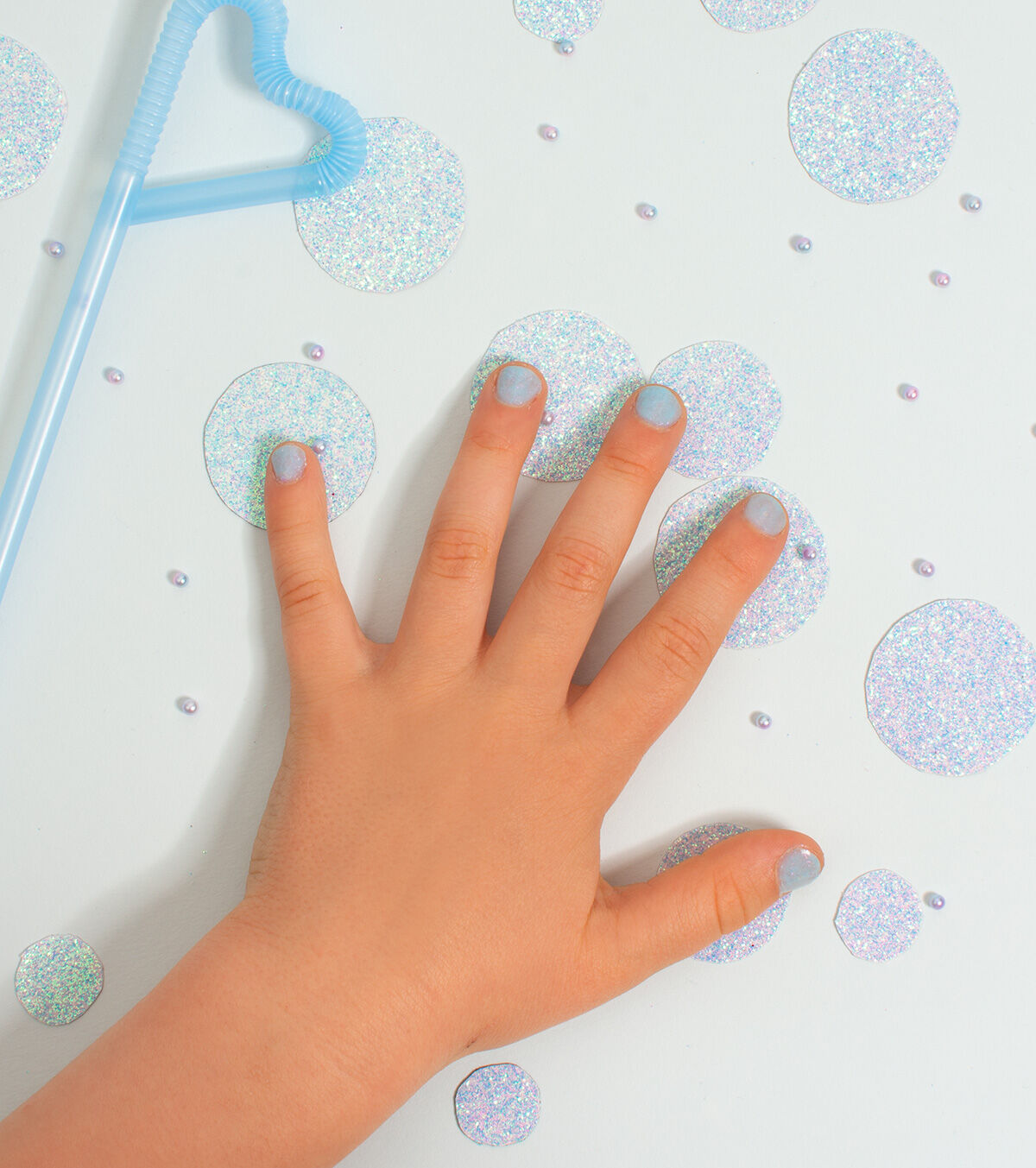 Le vernis Sofia de Peggy Sage Kids, un bleu ciel doux et apaisant, apporte une touche de sérénité aux ongles des enfants !