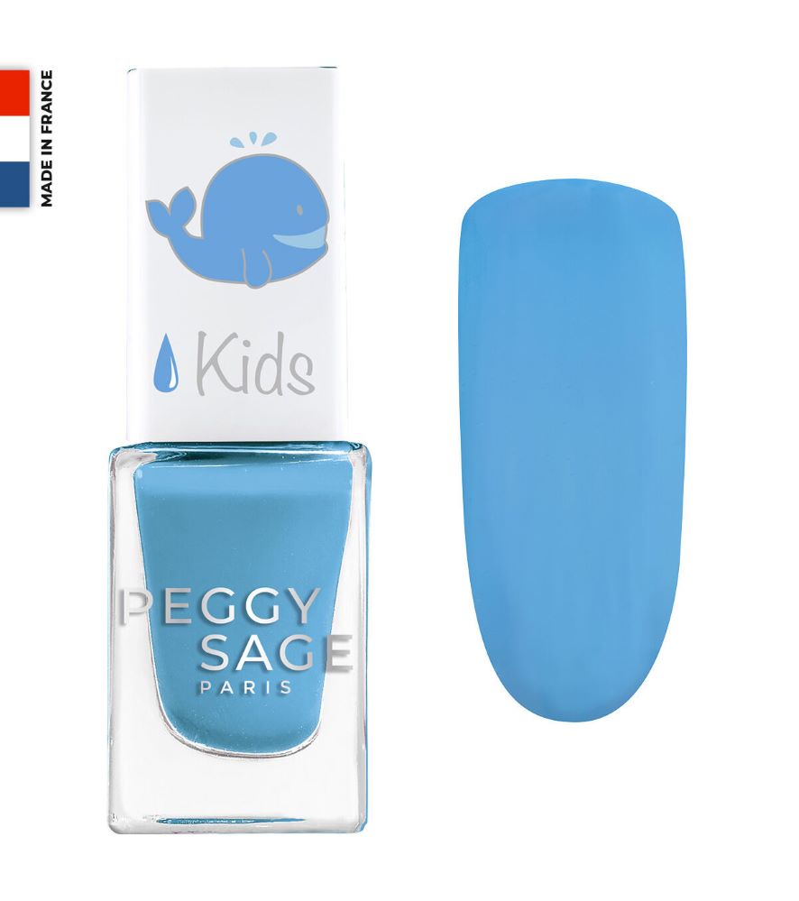Le vernis Tina de Peggy Sage Kids, un bleu azur doux inspiré des baleines, apporte une touche de sérénité et de fraîcheur aux ongles des enfants !