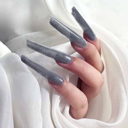Ce vernis semi-permanent argenté sublime tous les styles : des manucures minimalistes aux looks de soirée. Son éclat argenté unique reflète la lumière pour un rendu à la fois chic et audacieux.